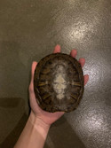 Lily 13 years old. In the first picture, she is chilling in her container. When I bought her, my palm was a gigantic space for her; she was tiny. Last year, she outgrew my palm. In the second picture, she is getting ready for her shell bath (her shell looks white on top because we had put calcium for her shell inside the water, and that causes it temporarily to look like that). Unfortunately, I couldn't find any pictures of baby Lily. But I made a drawing below of what she looked like as a baby.